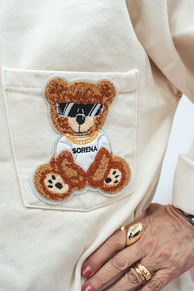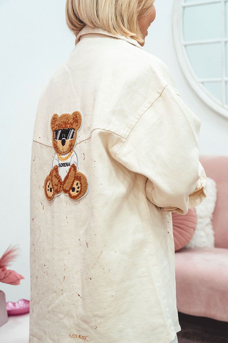 Recensisci per primo “Giacca camicia oversize panna con orso e dettagli dipinti a mano”
