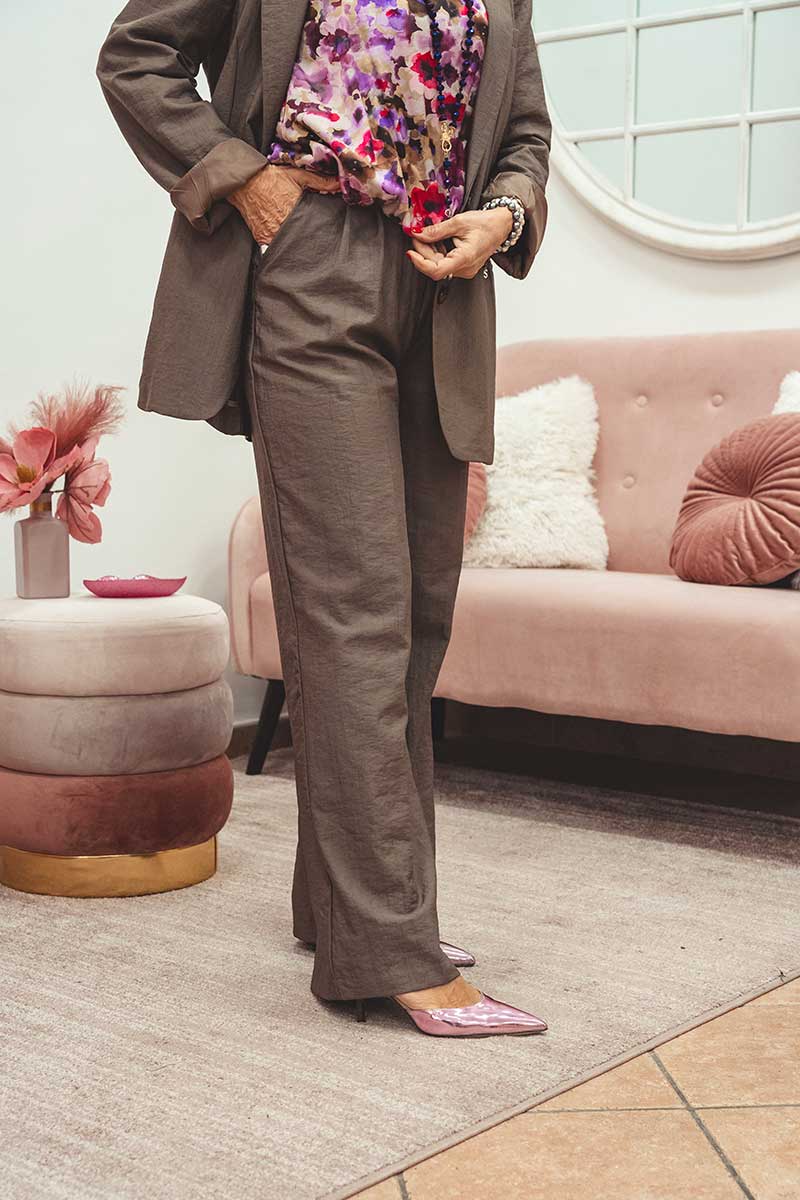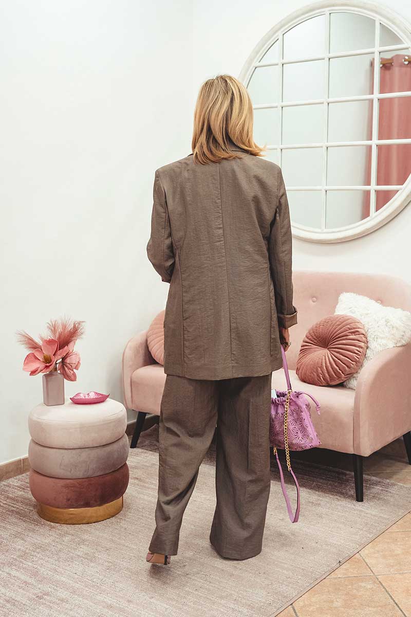 Tailleur color liquirizia, raffinato e versatile. Perfetto per look eleganti e contemporanei.